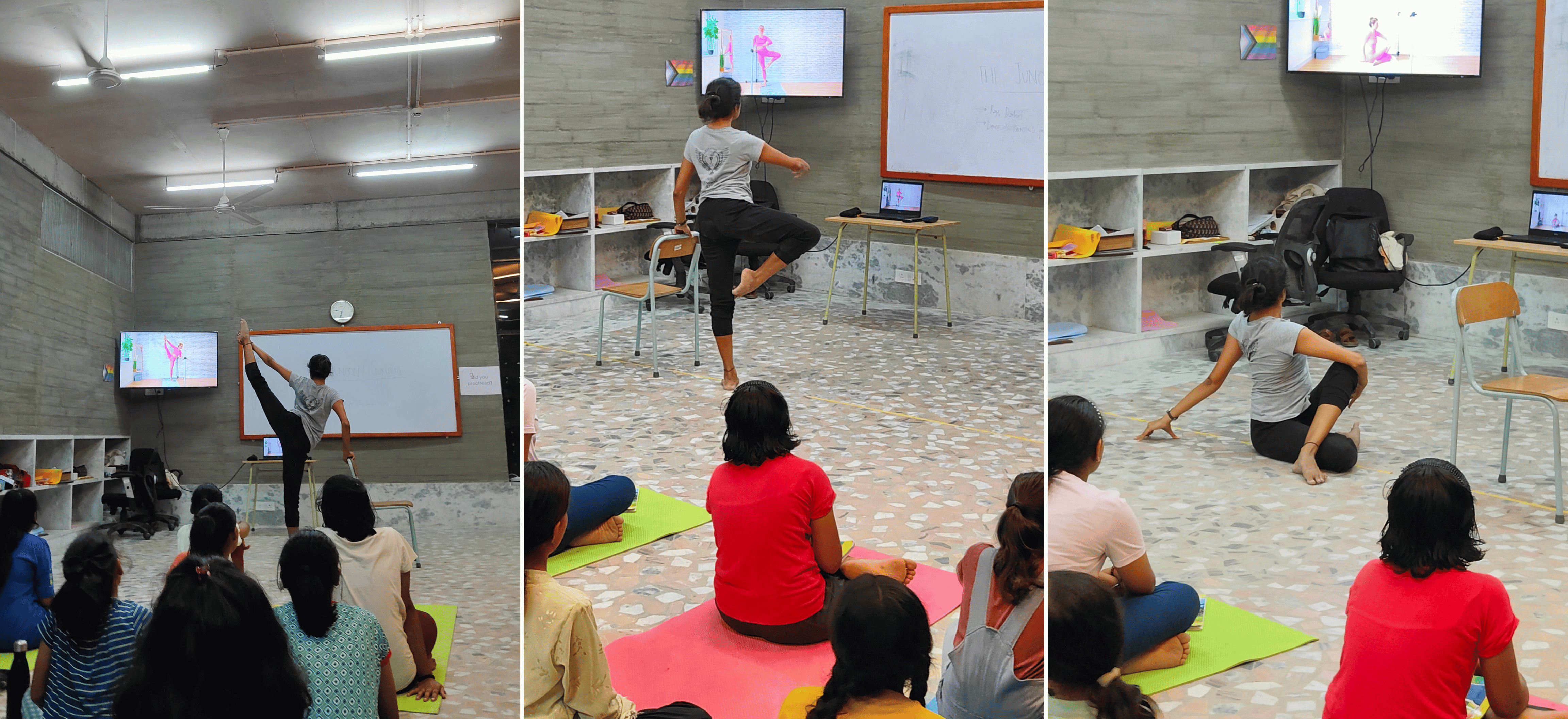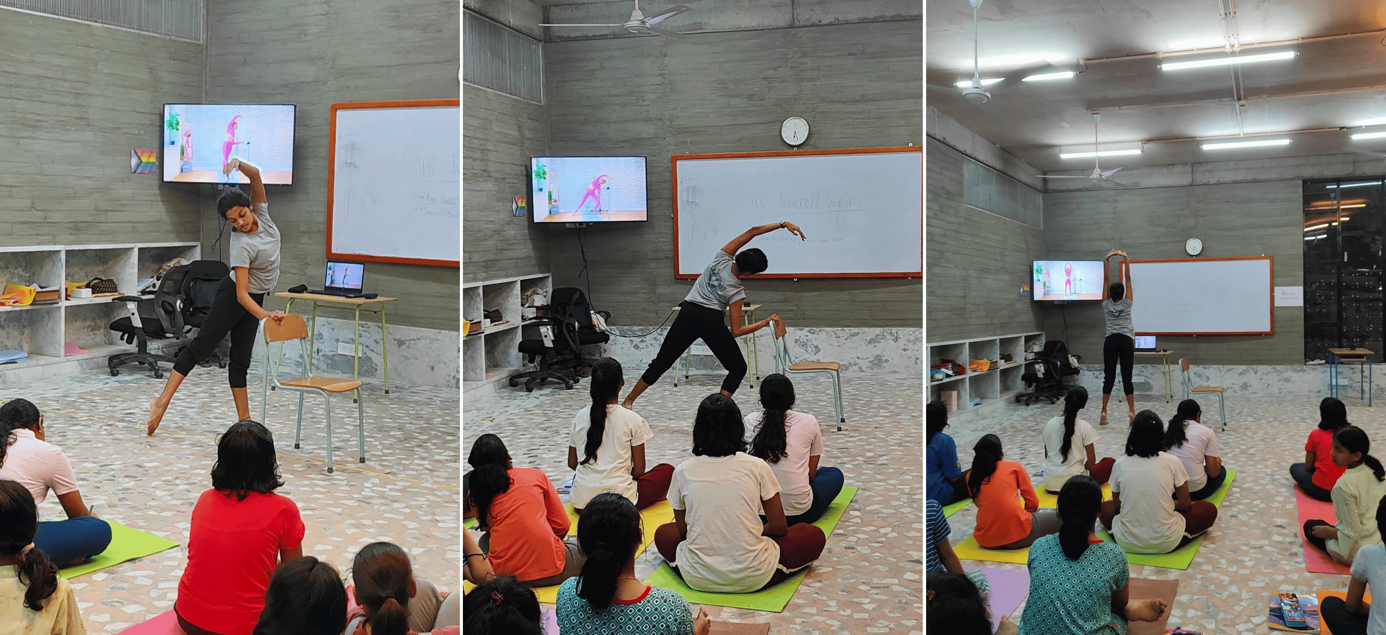 Amid a weekend in session that encompassed Meditation, Music, Discussion, Reflection, General Physical practice, the surprise of learning a Derivative Dance form of Classical Dance - the gorgeous and vibrant dance form of Garba - our Girls had a major surprise as Sleek Technique, an institute based on England, purposed with refinement and technique training in Classical Ballet curated two (30-minute) sessions for our Girls to Observe, Participate in and Understand the Importance of Floor Barre, Barre Work and Stretching in Classical Dance (specifically Classical Ballet) through.