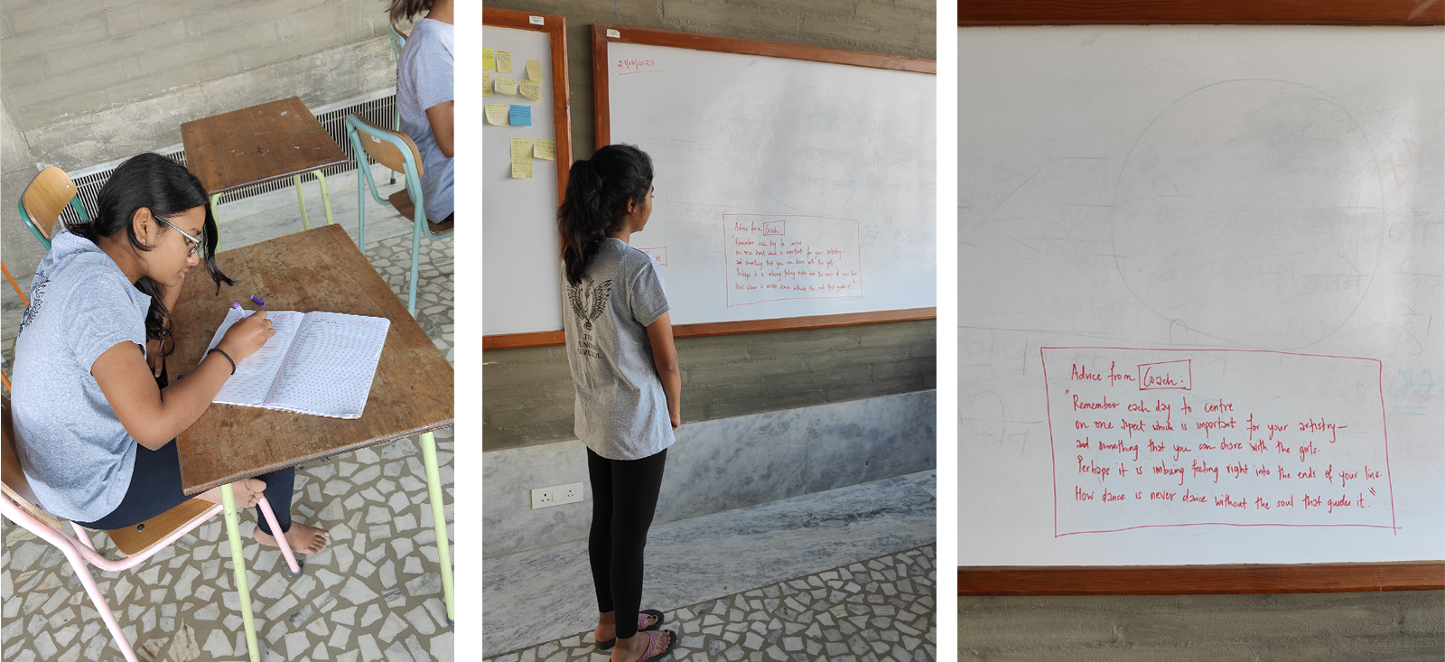 Our writing dancers then danced their writing into practice. Movements were crisper, lines more defined and metaphors a lot clearer for they had set their own agenda on paper before putting it into performance.